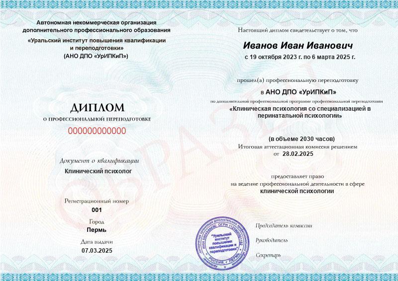 2 квалификации — «Клинический психолог» и «Перинатальный психолог».
