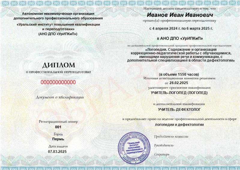 - Образец диплома о профессиональной переподготовке.