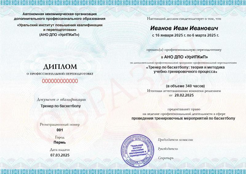 Да, дипломы и удостоверения оформляются в соответствии с действующим законодательством РФ. Документы печатаются на специальных бланках, заверяются печатью АНО ДПО «УрИПКиП».